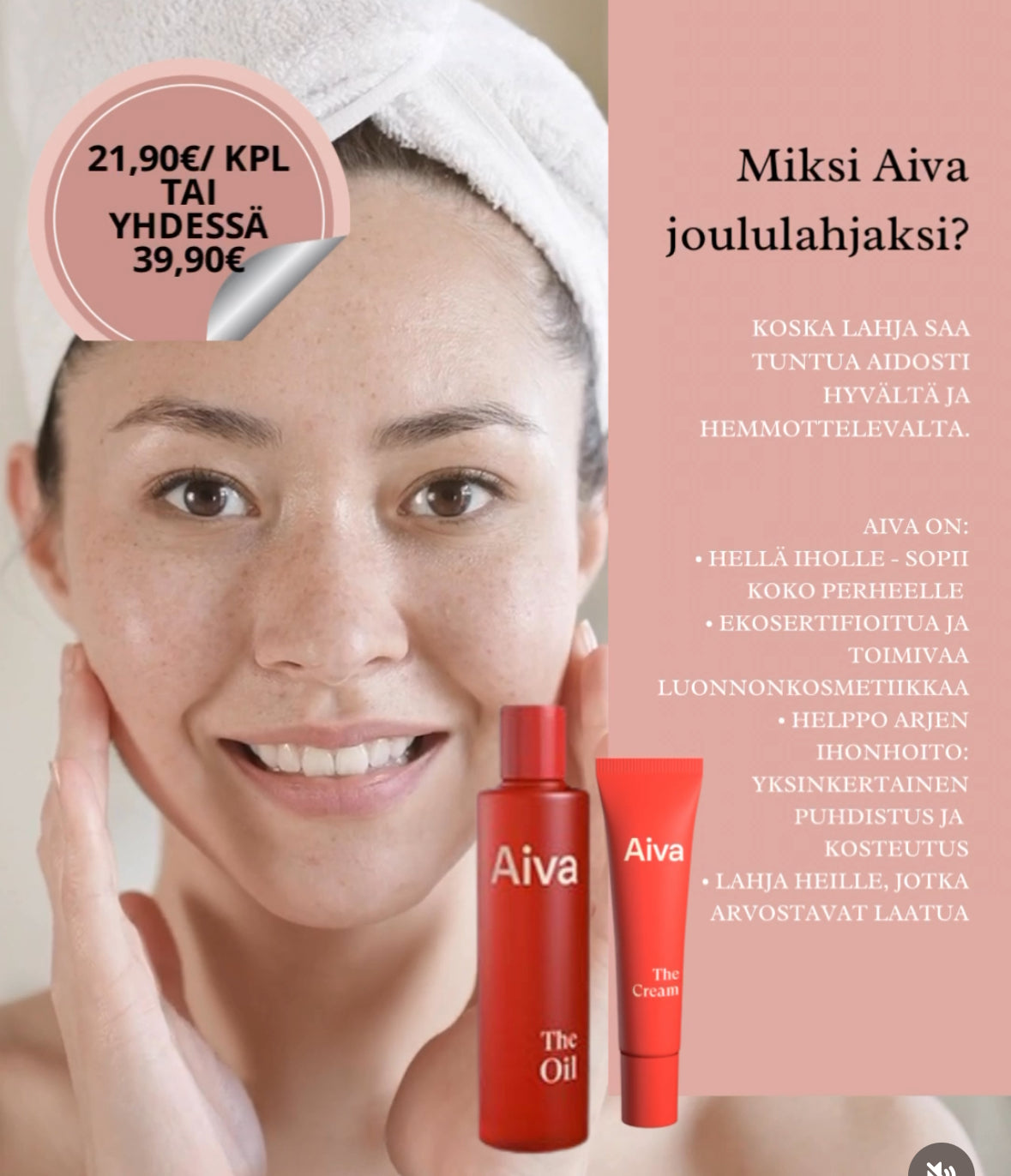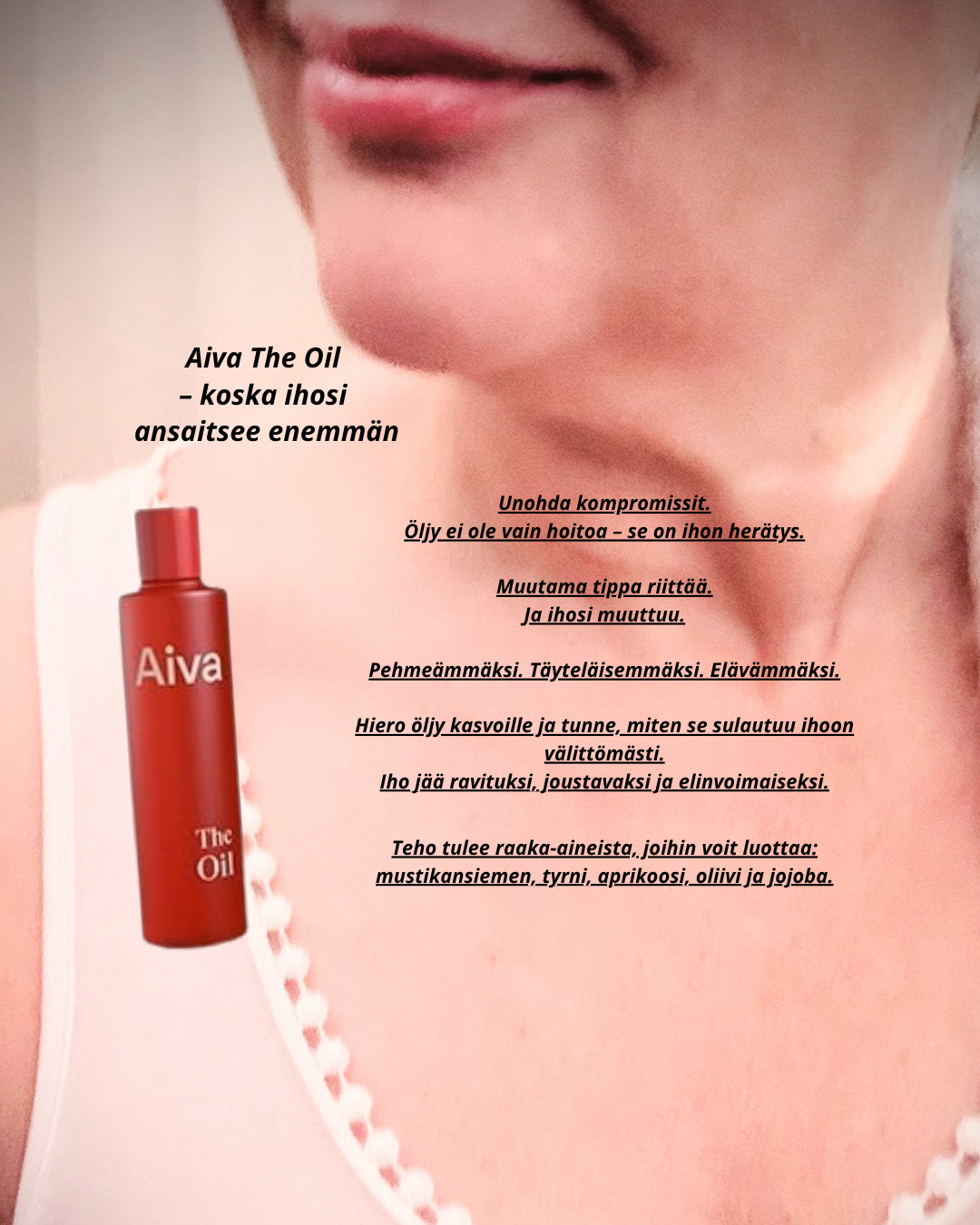 Kesällä helppohoitoisuus tuntuu erityisen hyvältä ja tarpeelliselta – eikä syyttä. Aiva-sarjan tuotteet ovat kuin luotu kesäkauteen: lempeitä, tehokkaita ja mutkattomia. Tässä viisi hyvää syytä, miksi keveys ja yksinkertaisuus hoitorutiineissa tekevät...