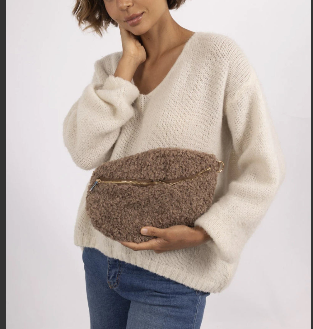 Tyylikäs ja pehmeä tekoturkislaukku mitoilla 30x20 cm, täydellinen arkeen tai iltaan. Lämmin ja miellyttävä materiaali tekee laukusta katseenvangitsijan, joka viimeistelee asusi tyylillä.