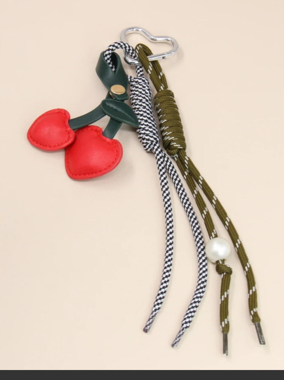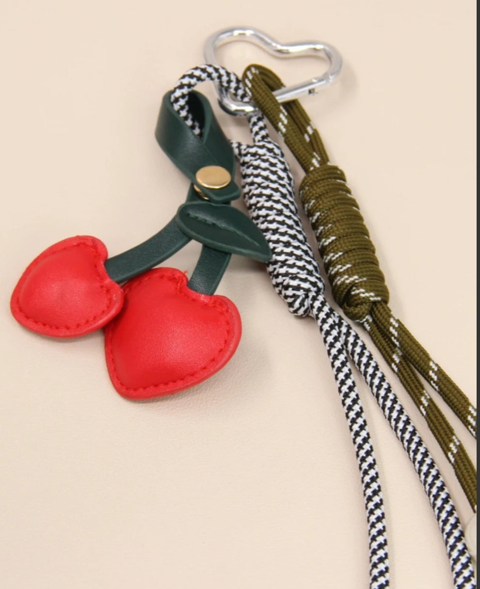 Tämä kirsikka-avaimenperä/ laukkukoru hurmaa elegantilla muotoilullaan ja hienostuneilla yksityiskohdillaan – todellinen must-have tyylisi viimeistelyyn. Onnea tuova amuletti, jossa yhdistyvät viehätys ja omaperäisyys vastustamattoman ilmeen luomiseksi!