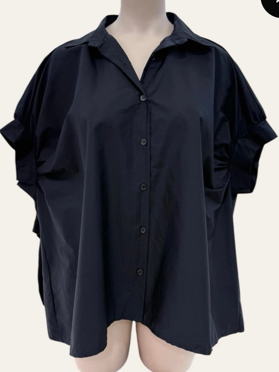 Tämä lyhythihainen musta paita on suunniteltu yhdistämään tyylikkyys ja käyttömukavuus. Pehmeä materiaali tuntuu miellyttävältä päällä, ja väljä mutta kauniisti laskeutuva leikkaus tuo trendikkyyttä pukeutumiseen. Klassinen musta sävy tekee paidasta monikäyttöisen – se sopii niin arjen rentoon tyyliin kuin huoliteltuun pukeutumiseen.