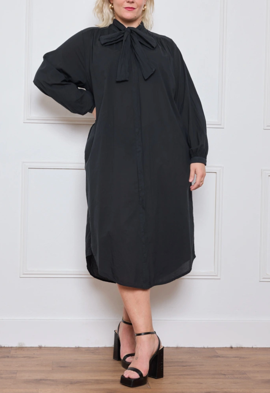 Pitkähihainen paitamekko, jossa on klassinen kaulus ja nappiyksityiskohdat edessä. Vyö korostaa kauniisti siluettia, ja laskeutuva kangas tekee mekosta sekä mukavan että tyylikkään. Täydellinen yhdistelmä chic- ja casual-tyyliä.