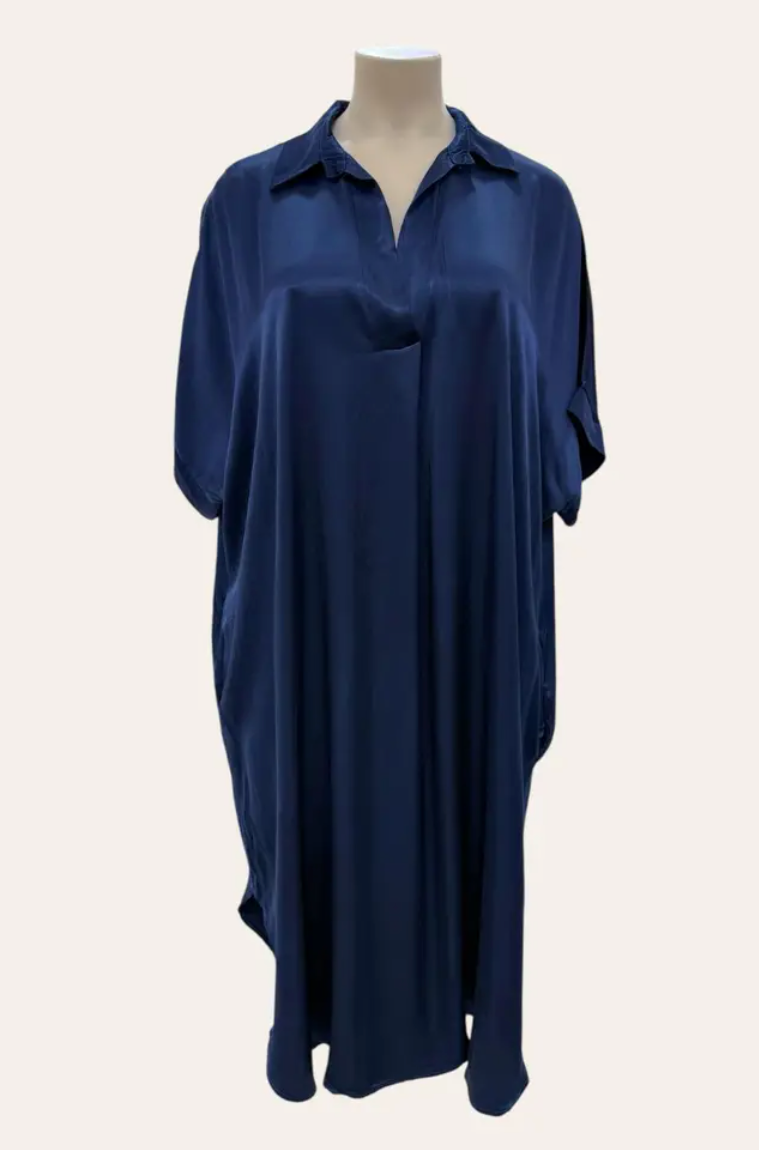 Ilmava lyhythihainen mekko, jossa on siisti poolokaulus ja rento istuvuus. Minimalistiset yksityiskohdat ja kevyt materiaali takaavat mukavuuden ja ajattoman tyylin. Täydellinen valinta rennon eleganttiin lookiin.