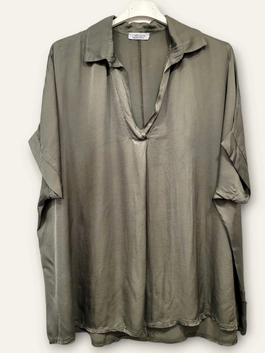 Tässä puserossa yhdistyvät moderni leikkaus ja huoleton eleganssi. Syvä V-pääntie tuo naisellista ilmettä, ja leveät hihat korostavat kevyen kankaan liikettä. Väljä ja kauniisti laskeutuva malli tekee puserosta ilmavan ja miellyttävän päällä.