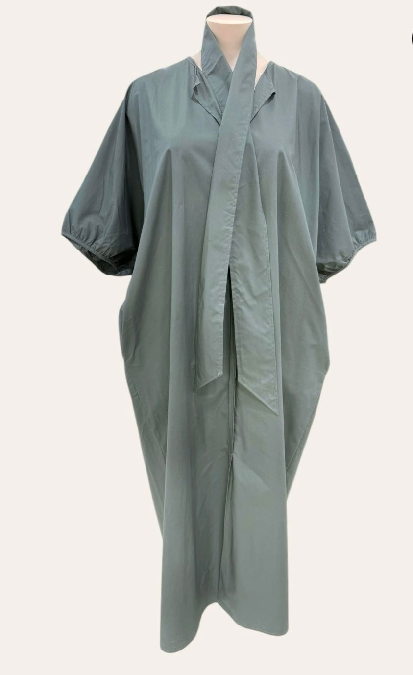 Väljä mekko, jossa on lyhyet hihat ja elegantti solmupääntie. Vyötärön laskokset tuovat ilmeeseen kevyttä muotoa ja tekevät tyylistä sekä rennon että chicin. Monikäyttöinen mekko, joka yhdistää mukavuuden ja tyylikkyyden – täydellinen valinta kaikkiin tilanteisiin.